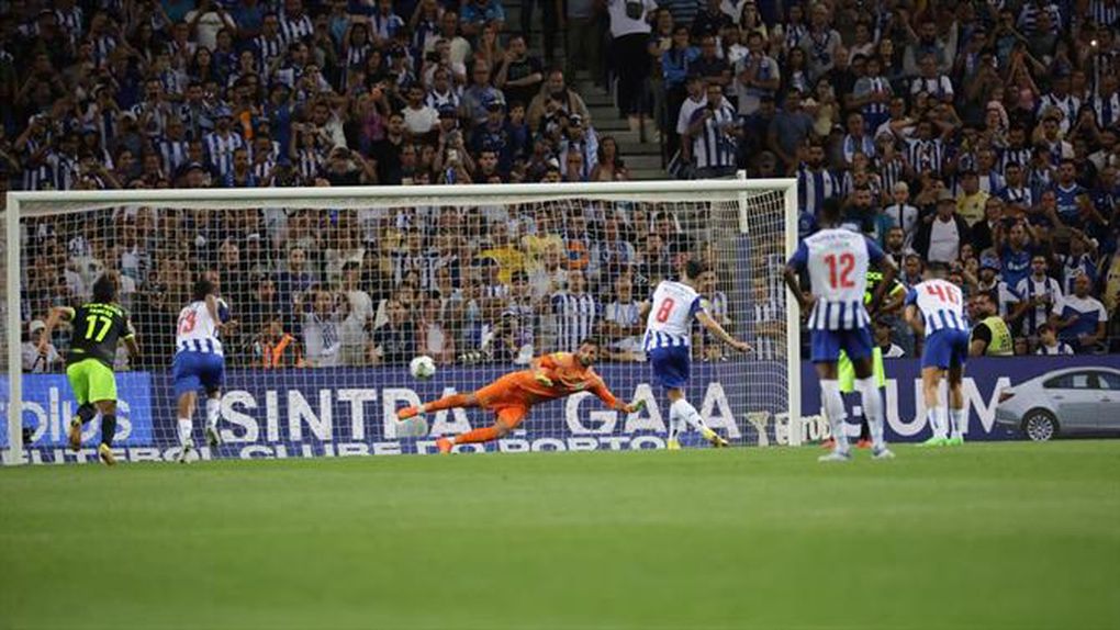 O Sporting está a perder o clássico (0-1), mas já esteve muito perto de marcar em três ocasiões, no Estádio do Dragão. Primeiro Morita atirou ao poste (11’), depois Diogo Costa fez três grandes defesas (a segunda é a que mais impressiona) aos 45+3, 45+4 e 83.