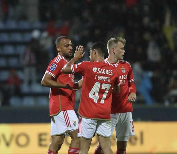 É interessante tentar dissecar o pensamento de Schmidt. Mais pressionante que qualquer dos outros avançados, coube a Gonçalo Guedes fechar o corredor interior. Aursnes guardou o meio-espaço contíguo às costas de Rafa e João Neves o que surgia atrás de Di María (ao mesmo tempo que se mantinham atentos ao lado de fora). Florentino subiu para ler as linhas de passe contrárias e João Mário manteve-se no apoio. Por vezes, surgiu um quadrado irregular no corredor central logo a seguir ao trio da frente. E obrigava o Arouca a passar dificuldades, recuperando cedo a bola. Uma melhor decisão teria certamente depois produzido mais oportunidades e eventualmente mais golos.