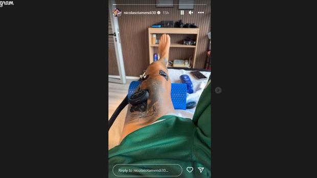 Nicolas Otamendi partilhou, nas redes sociais, imagem do tratamento ao joelho esquerdo. O capitão dos encarnados, 35 anos, lesionou-se no particular entre a Argentina e a Austrália, há uma semana, em Pequim, e o problema físico - estiramento sem consequências graves - obriga-o a precaução.