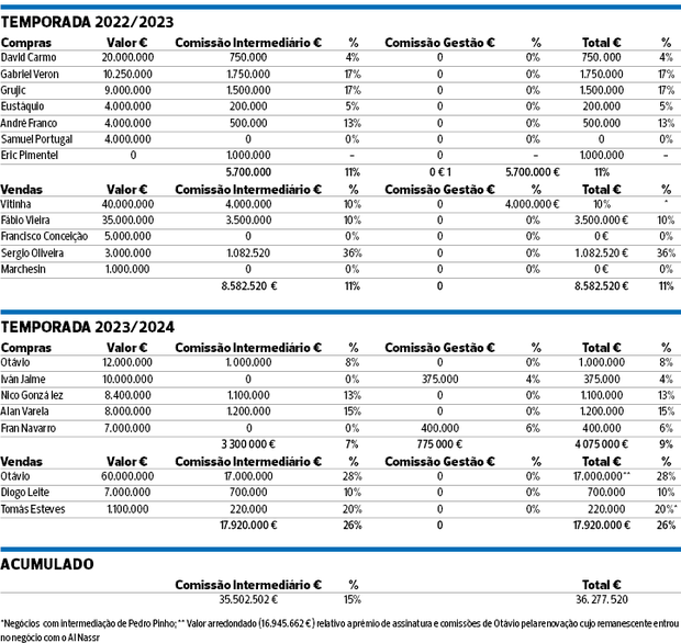 O processo só voltou a ser falado quando o Al Nassr comprou os direitos económicos de Otávio, por €60 milhões, em agosto de 2023. As contas não batiam certo. Mesmo pagando €12,7 milhões ao Coimbra Sports, clube que detinha 32,5 por cento do passe do futebolista, o FC Porto teria de encaixar cerca de €47,3 milhões. No Relatório e Contas do primeiro semestre do exercício de 2023/2024, foi possível verificar que entraram nos cofres das SAD €39 milhões.