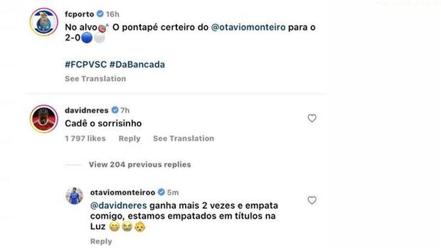 Pelo menos duas provocações de David Neres a Otávio receberam na manhã deste domingo resposta, com o jogador do FC Porto a citar o palmarés para acabar com a questão.