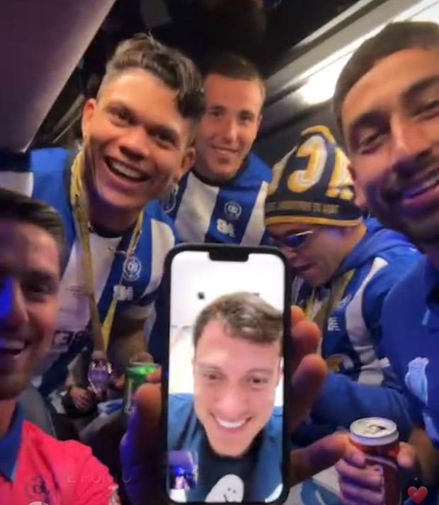 Todavia, este não se quis ficar pela simples felicitação e juntou-se, ainda que por videochamada, a Alan Varela, Pepê, Nico González, Evanilson e Cláudio Ramos nos festejos do autocarro em direção ao Estádio do Dragão.