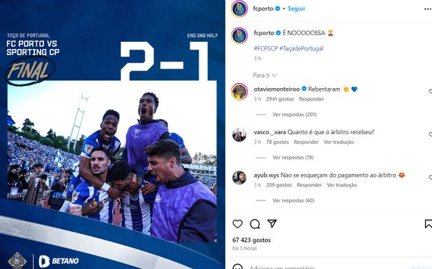 Confirmada a conquista da Taça de Portugal pelo FC Porto, foram várias as reações à vitória sobre o Sporting (2-1), após prolongamento, e não pode faltar a do médio Otávio, antigo jogador dos dragões agora ao serviço do Al Nassr.