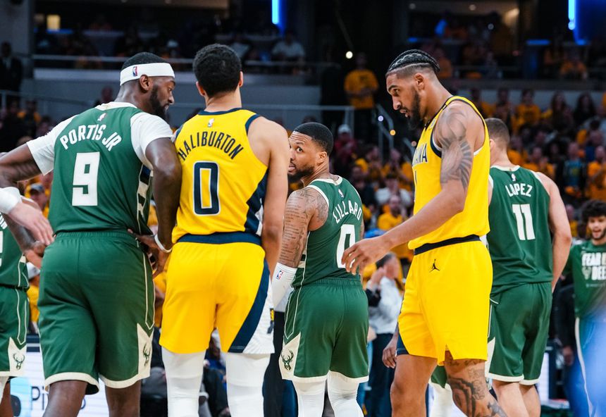 Sem Giannis Antetokoumpo, mas com o reforço Damian Lillard (28 pontos, 2 ressaltos e 4 assistências), os Bucks procuraram reduzir a desvantagem no play-off, mas não conseguiram contrariar os Pacers, com Obi Toppin (21 pts, 8 res e 2 ass), Pascal Siakam (19 pts, 7 res e 4 ass) e T.J. McConnell (20 pts, 2 res e 9 ass) em destaque.