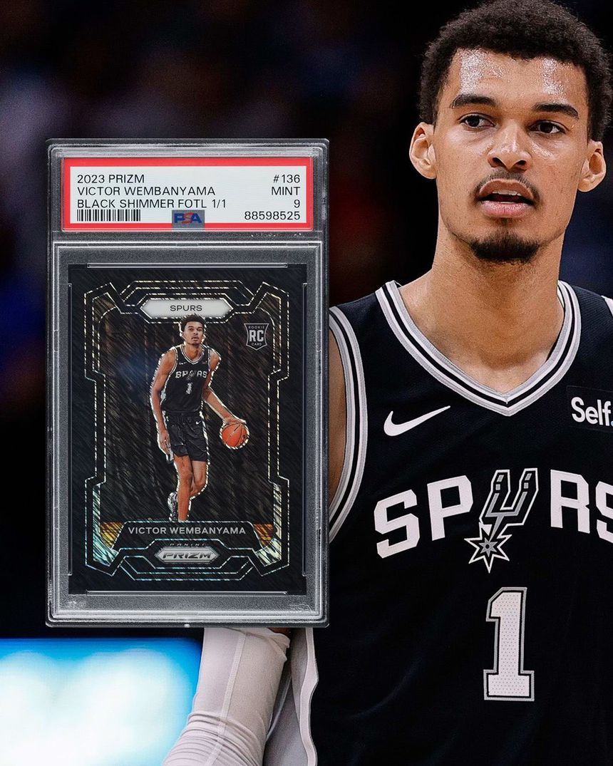 Fora de competição até ao fim desta temporada por ter sido descoberto um coágulo numa veia do ombro direito após ter participado pela primeira vez no All-Star Game, em São Francisco, na passada semana, há quem continue a acreditar profundamente que Victor Wembanyama, que se encontra a apenas há época e meia na Liga, vai marcar o futuro da NBA nas próximas décadas e por isso pagou $860,100, qualquer coisa como €822 mil, num leilão por um raro cromo — 2023 Prizm Black Shimmer —, da época de rookie (2023/24) do poste francês dos San Antonio Spurs.