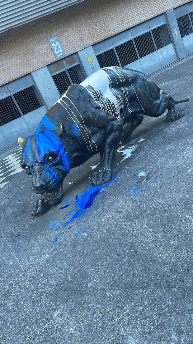 A estátua da Pantera, que se encontra nas imediações do Estádio do Bessa, no Porto, foi vandalizada durante a última madrugada. Sob a cor preta que caracteriza o símbolo do Boavista apareceram manchas de tinta azul e branca, as cores do rival da cidade, o FC Porto.
