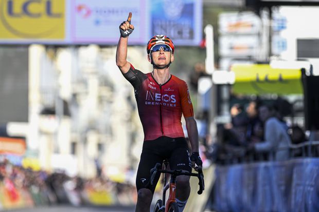 Os compatriotas destacaram-se na penúltima subida (Col d'Éze), com o cume a 25 quilómetros da chegada, e bateram definitivamente a concorrência na ascensão final (Col des Quatre Chemins), a apenas oito quilómetros do risco, com o corredor da equipa britânica Ineos Grenadiers a impor-se, por 29 segundos, ao compatriota da formação neerlandesa Visma-Lease a Bike.