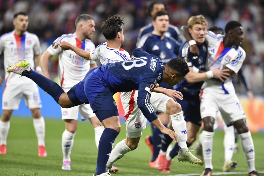 Não esteve fácil, na primeira meia hora, o desencaixe das equipas. No meio-campo, o Lyon revelou-se, desde início, mais aguerrido e mais dominante, com o Manchester United a tentar explorar as alas e as bolas na profundidade. Foi dos pés de Bruno Fernandes que saiu o primeiro lance verdadeiramente perigoso, mas o remate foi desviado de forma crucial por Niakhaté. Foi ao minuto 26 da partida que, de bola parada e em momento de crescimento para os franceses, surgiu o primeiro da partida. E as palavras de Matic na antevisão — ele que definiu Onana como «o pior guarda-redes da história do Man. United» — tornaram-se profecia. Thiago Almada bateu livre para zona traiçoeira, mas a bola bateu à frente do camaronês... e entrou.