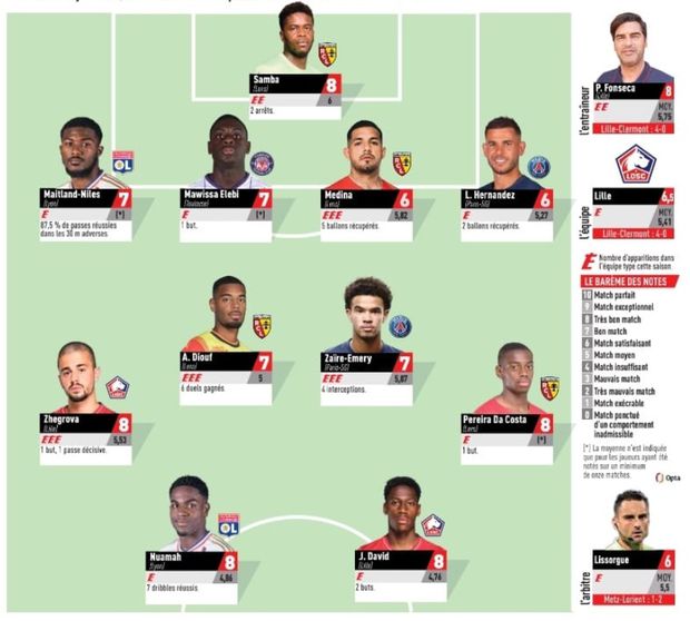 O português David Pereira da Costa, do Lens, está no onze da semana.