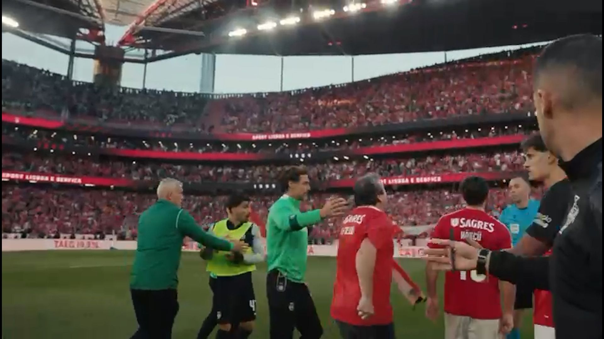 «Estava com as emoções ao rubro. Quando o jogo acabou entrei, simplesmente, no relvado. Estava uma grande confusão entre os jogadores, empurrões para um lado e para outro. Aproximei-me e manifestei o meu desagrado aos árbitros», partilha a A BOLA Alfredo Silva. Alega que não tinha intenções de agredir alguém: «Até disse ao Kokçu para ficar descansado, que não havia problema algum. Não sei se percebeu. Não fiz mal a ninguém. Depois um funcionário do Benfica disse-me para sair e saí acompanhado de um segurança.»