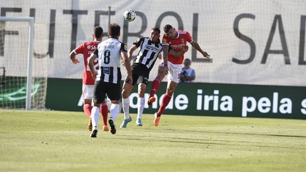 Após um livre direto, Morato não conseguiu afastar a bola, que ficou à mercê de Pedrão, que reduziu para o Portimonense (1-2) frente ao Benfica.