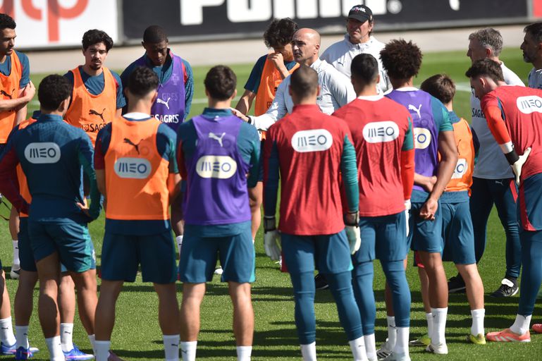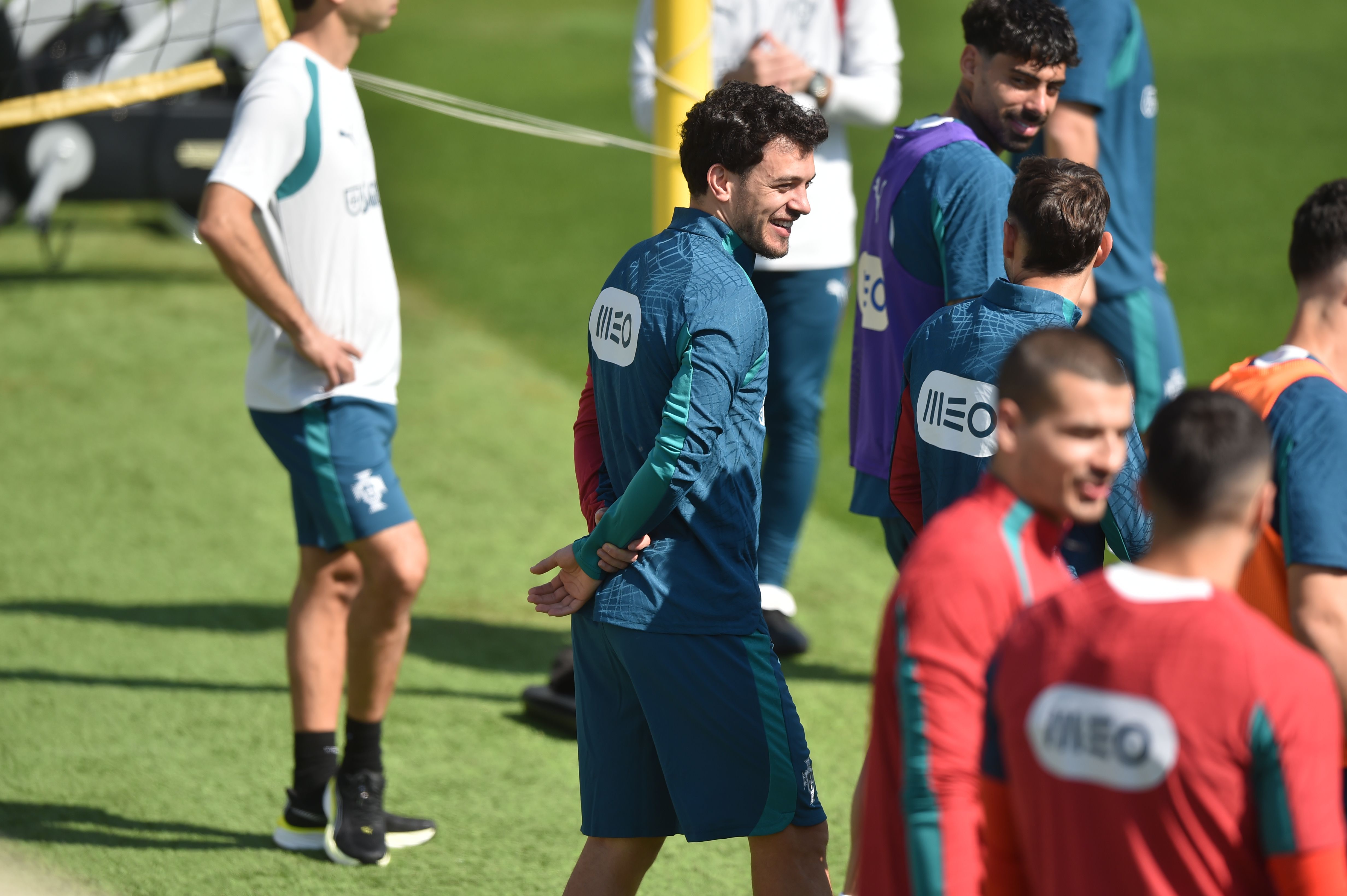 Nos 15 minutos de treino abertos à Comunicação Social foi possível ver o selecionador Roberto Martínez a reunir os jogadores para lhes endereçar algumas palavras antes do início da sessão que, diga-se, decorreu em ambiente de boa-disposição.