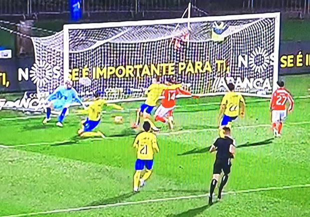 45’: O árbitro deu quatro minutos de tempo adicional, recuperação de tempo perdido; além do cartão amarelo, foi sobretudo pelo momento de ida ao monitor, após chamada do VAR, para analisar o penálti a favor do Arouca, na sequência da mão de António Silva.