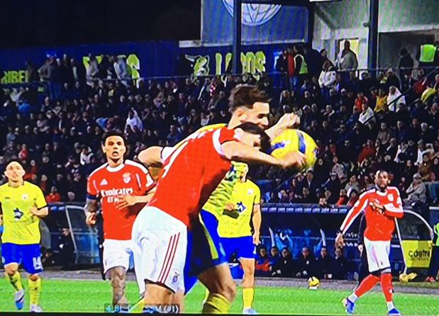 17’: Puxou. Dahl cruzou e Fontán, com a mão direita no ombro direito de Pavlidis, que estava na frente e com a posição ganha, agarra e puxa, fazendo-o cair. Não só o impediu de disputar a bola, como foi o próprio que cortou o esférico. Penálti que ficou por assinalar a favor do Benfica.