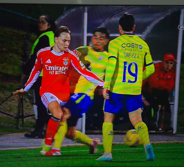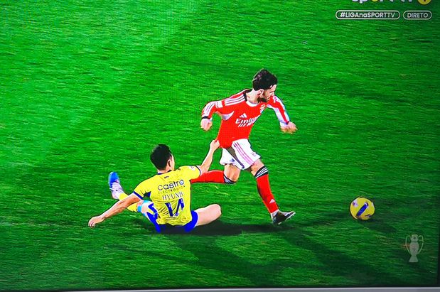 36’: Fora de tempo. Quando Diogo Monteiro estica a sua perna esquerda, já a bola não está lá, acabando por entrar de sola no pé direito de Andreas Schjelderup. Uma infração enquadrada na negligência passível de cartão amarelo, que acabou por não ser mostrado.