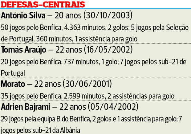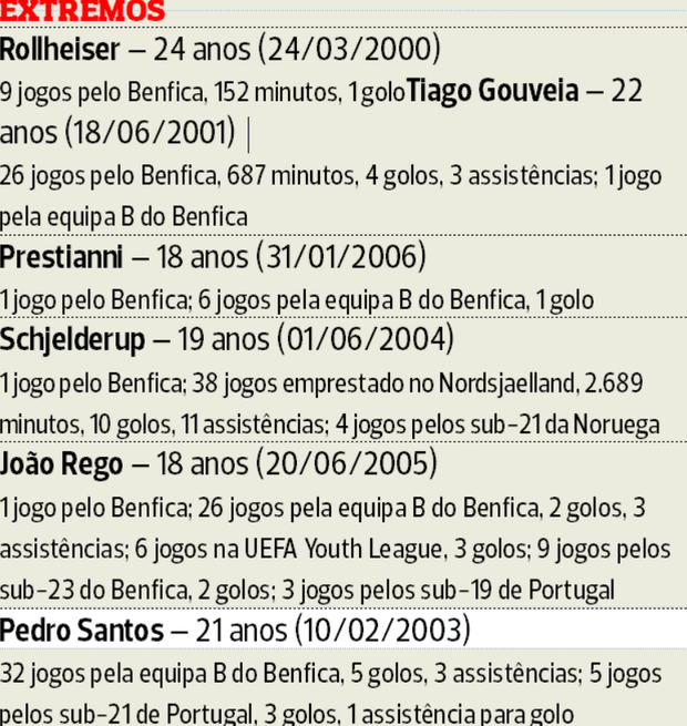 É, pois, um autêntico pelotão da juventude aquele que Schmidt terá para avaliar no Benfica.