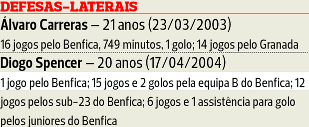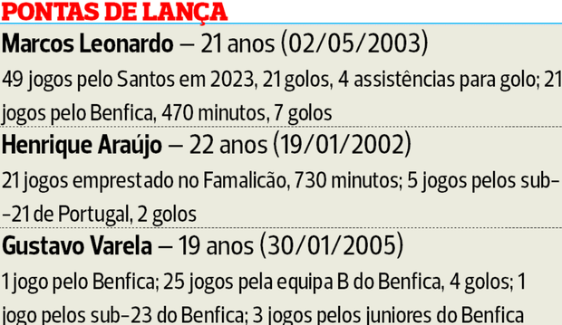 O mesmo se passará em relação ao ponta de lança brasileiro Marcos Leonardo e ao lateral-esquerdo Álvaro Carreras, que também foram contratados no mercado de inverno e já deixaram boas indicações nos seis meses da última temporada — estes últimos quatro que chegaram em janeiro representam para a SAD um investimento global acima dos €40 milhões. Vieram a pensar também no futuro, explicou publicamente Rui Costa.