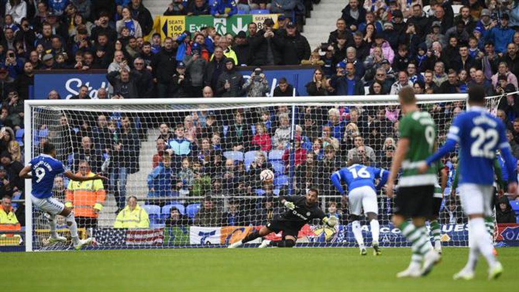 Um penálti assinalado por bola no braço de Eduardo Quaresma permitiu a Calvert-Lewin bater Adán e colocar o Everton a vencer o Sporting, em Goodison Park, em cima do intervalo.