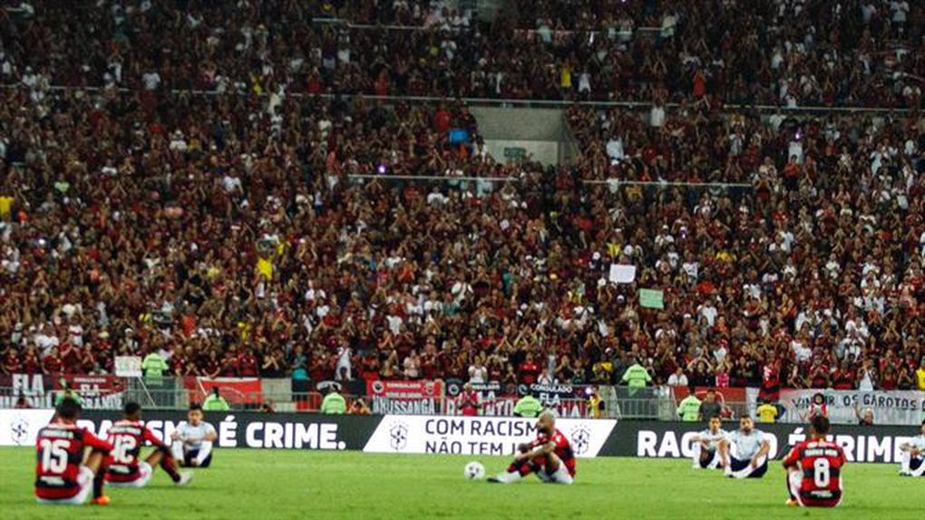 The players of Flamengo and Cruzeiro players also took a seat against racismpic.twitter.com/1elnWcpmxn