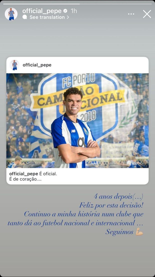 Pepe assinala os cinco anos desde o regresso ao FC Porto