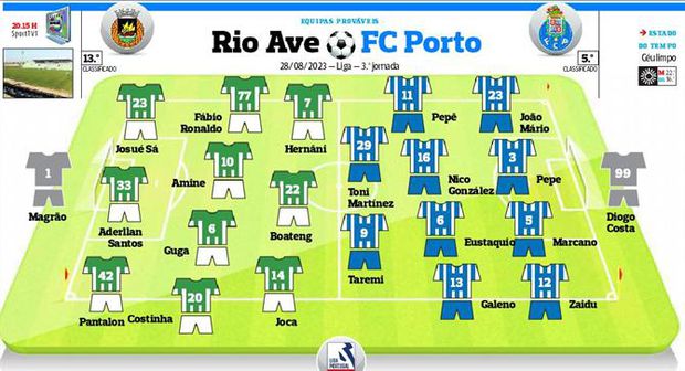 Para este duelo com o Rio Ave, Sérgio Conceição deve promover uma única alteração no onze, fazendo regressar à equipa o capitão Pepe, em detrimento de Fábio Cardoso. Recorde-se que o internacional português cumpriu dois jogos de suspensão, na sequência do castigo de que foi alvo por parte do Conselho de Disciplina por palavras dirigidas a Luís Godinho, árbitro que o expulsou no clássico com o Benfica.