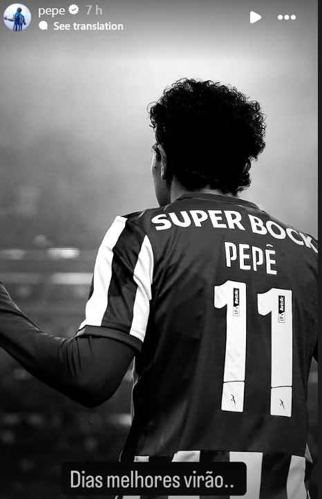 Pepê, médio ofensivo do FC Porto, deixou uma mensagem nas redes sociais ao final da noite desta segunda-feira, depois de ter saído lesionado do encontro entre os dragões e o Vitória de Guimarães, que terminou empatado a uma bola.