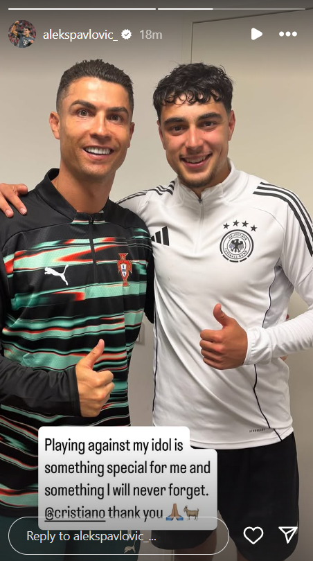 «Jogar contra o meu ídolo é muito especial e algo que nunca vou esquecer. Cristiano Ronaldo, obrigado!», escreveu na legenda de uma foto com o capitão da Seleção lusa.