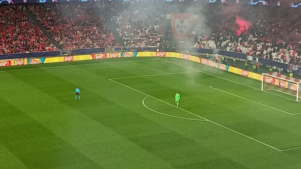 Mais pirotecnia na bancada inferior sul da Luz, vaias das bancadas, jogo interrompido por causa de tocha no relvado!