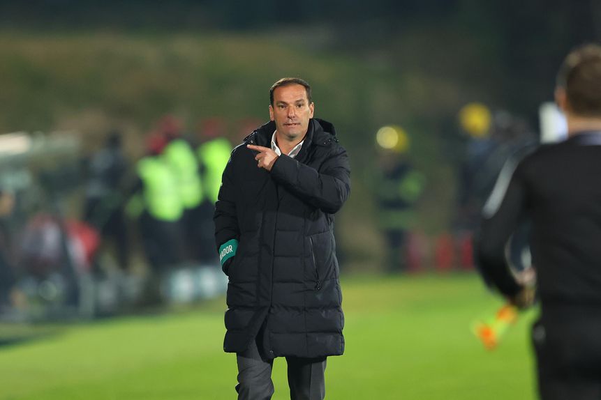 Sabíamos que ia ser um jogo difícil. Tinha dito aos nossos jogadores que normalmente quando uma equipa joga a Liga dos Campeões depois no jogo seguinte quer acelerar e chegar ao marcador cedo, para depois gerir um pouco. Tivemos algumas dificuldades quando o Benfica conseguiu segurar a bola. Nós não conseguimos muito pressionar. Começámos a baixar mais e a ter mais dificuldades sobre o nosso corredor direito, nas costas do Vrousai. Não conseguimos fechar esse corredor com o Carreras, Kokçu e Bruma a fazerem algumas diagonais por dentro. O Benfica teve mais cantos por ai, mas sem oportunidades flagrantes. Nós quando tivemos a bola tivemos dificuldades em sair com algum critério. Ainda assim, conseguimos duas oportunidades, pelo Clayton. O Benfica teve um volume superior até ao intervalo. Na segunda parte tentámos mudar, mas o segundo golo do Benfica é antecedido de falta sobre o Clayton. Fiquei com dúvidas. Para mim há falta sobre o Clayton antes de haver o penálti. Depois houve uma grande reação da nossa parte. O nosso lema é nunca desistir. A equipa conseguiu chegar ao 2-2, que é o mais difícil, e numa transição, sofremos o 2-3. Poderíamos ter matado aquela jogada mais cedo. Mas, há alguns erros da nossa parte, fruto da juventude que temos no plantel. Poderíamos ter feito falta no meio-campo ou à entrada da área. Aquela transição, aos 85 minutos, não pode acontecer.