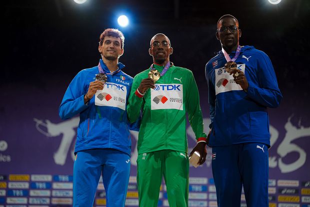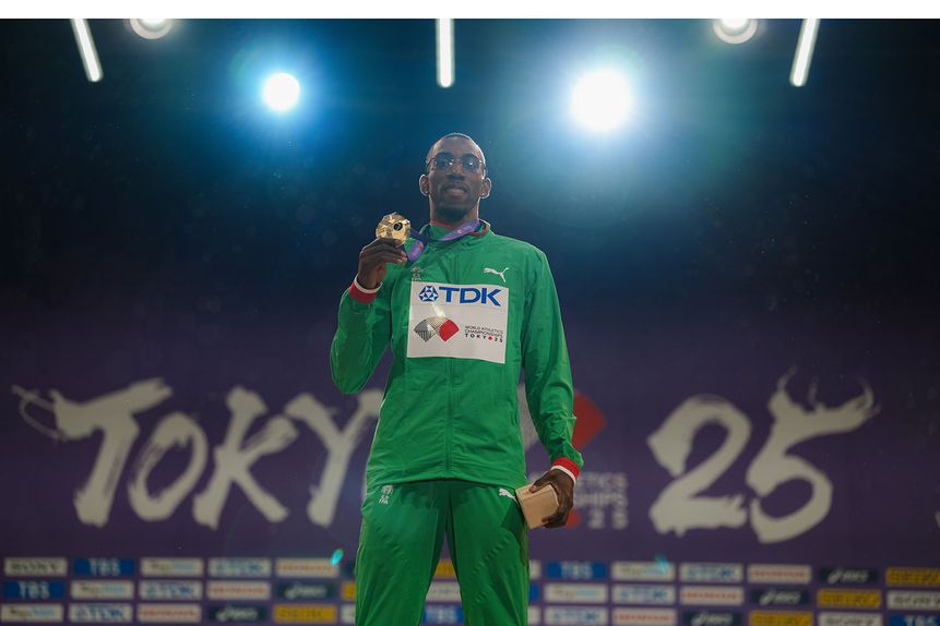 Pedro Pablo Pichardo subiu ao pódio no Estádio Nacional de Tóquio para celebrar o título de campeão mundial do triplo salto, o segundo consecutivo na carreira. O português conquistou a medalha de ouro na sexta-feira, a segunda de Portugal em Tóquio-2025, após Isaac Nader nos 1500 metros, vencendo a final do concurso da sua disciplina com um salto de 17,91 metros, na última tentativa, superando o italiano Andrea Dallavalle (17,64) e o cubano Lázaro Martínez (17,49), que o ladearam na cerimónia de consagração este sábado.