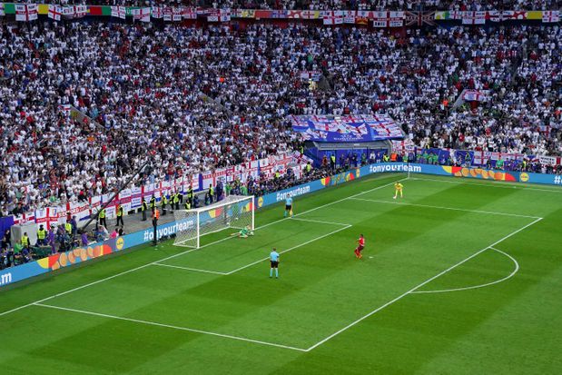 Jordan Pickford defendeu o penálti batido por Akanji, permitindo que Inglaterra avançasse para as meias-finais do Europeu.