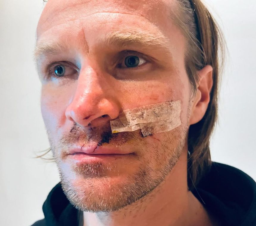 Taddy Blazusiak deixou publicação nas redes sociais com imagens da cara desfigurada por cabo colocado em trilho