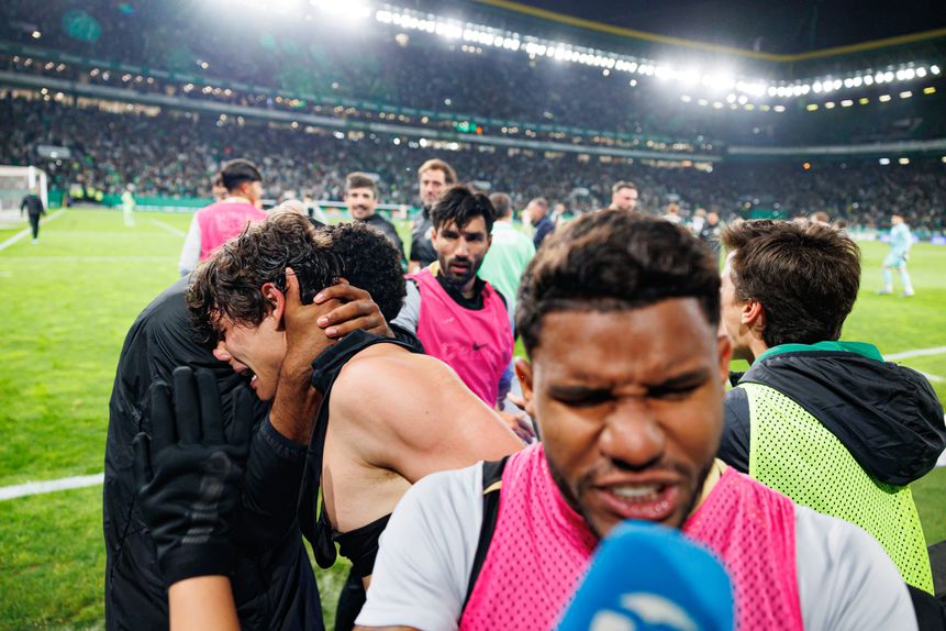 Quase todos os elementos do plantel partilharam uma foto com o herói do momento. Harder, Gyokeres, Matheus Reis, Gonçalo Inácio, St. Juste, Quenda, entre outros, foram os mais efusivos partilhando fotografias e vídeos do momento aos 90+3’.