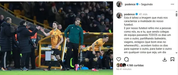 No dia do funeral de Diogo Jota, Daniel Podence, atualmente ao serviço do Al Shabab, da Arábia Saudita, partilhou nas redes sociais uma extensa mensagem em que recordava o antigo colega de equipa no Wolverhampton e amigo, que morreu tragicamente num acidente de viação, na passada quinta-feira.