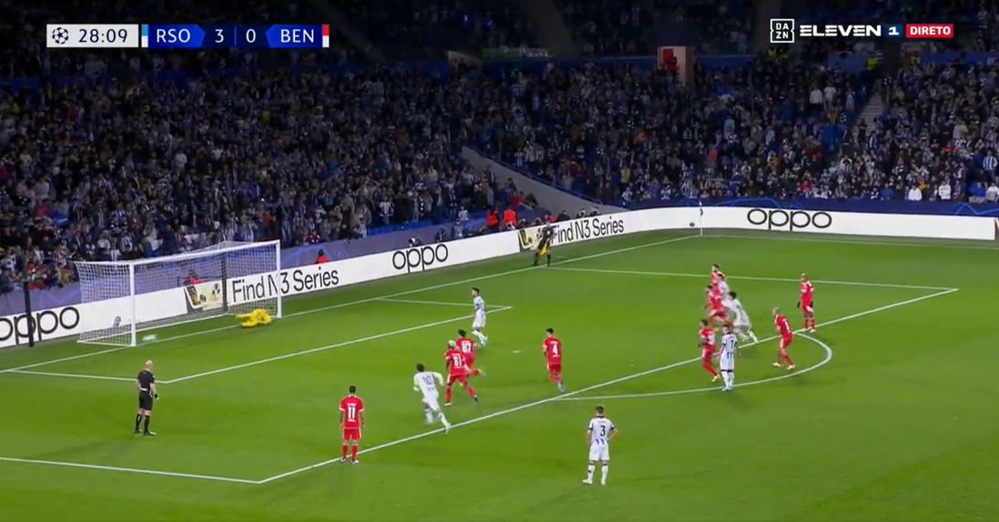 O Benfica podia estar numa posição ainda pior, caso Brais Mendez tivesse acertado o penálti e feito o 4-0 para a Real Sociedad. O remate do jogador embateu no poste, ao minuto 29.