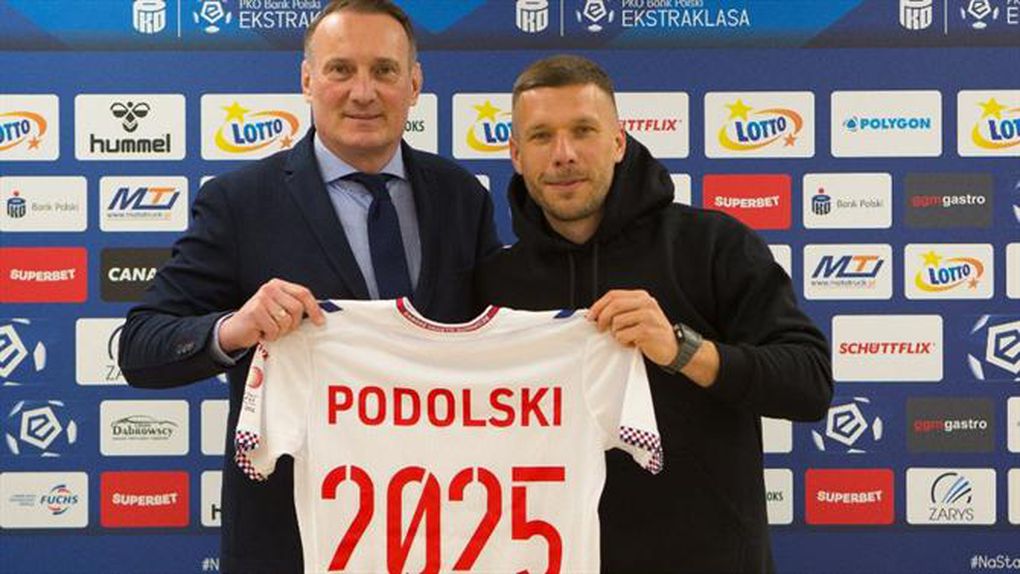Podolski, de 37 anos, chegou ao clube polaco em 2021 e desde então soma 59 presenças, 16 golos e 14 assistências.