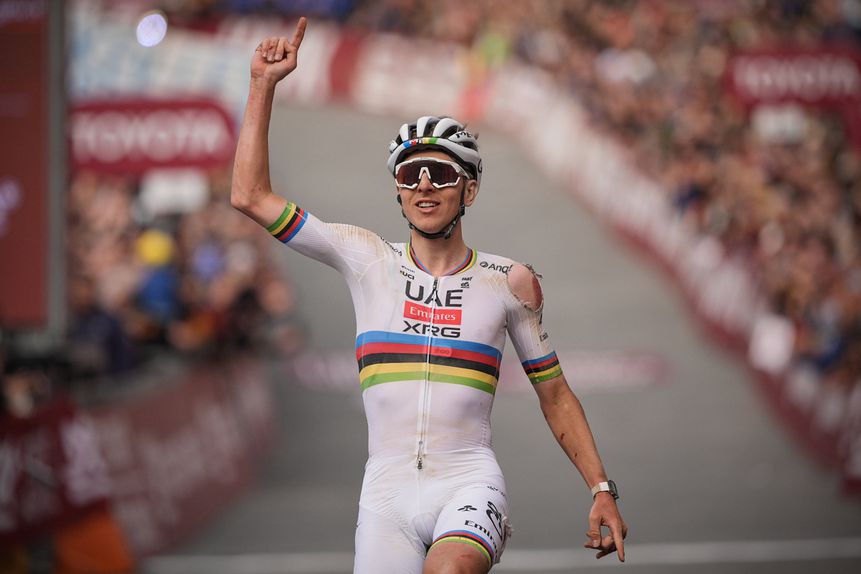 ‘Pogi’, vencedor da corrida toscana em 2022, 2024 e 2025, deixou Pidcock a 1.24 minutos, com o seu companheiro belga na UAE Emirates, o belga Tim Wellens, em terceiro, a 2.12 m.