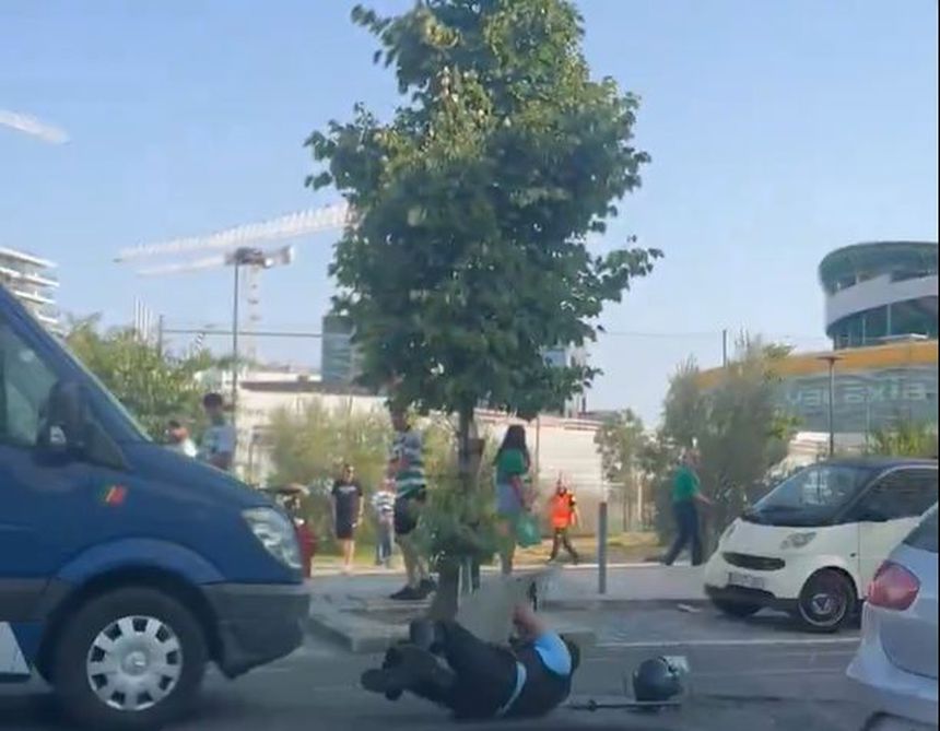 Segundo um breve vídeo colocado nas redes sociais, o polícia - equipado com capacete e escudo - parecia acorrer, com outro companheiros, a um momento de tensão, quando acabou atropelado por uma carrinha da PSP.
