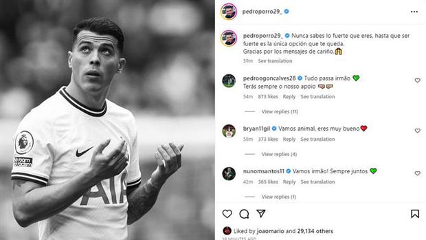 Porro voltou com uma mensagem de força, escrita em castelhano. «Nunca sabes quão forte és até que ser forte é a única opção que te resta. Obrigada pelas mensagens de carinho», escreveu, tendo recebido alento de vários antigos companheiros do Sporting, como Pedro Gonçalves ou Nuno Santos.