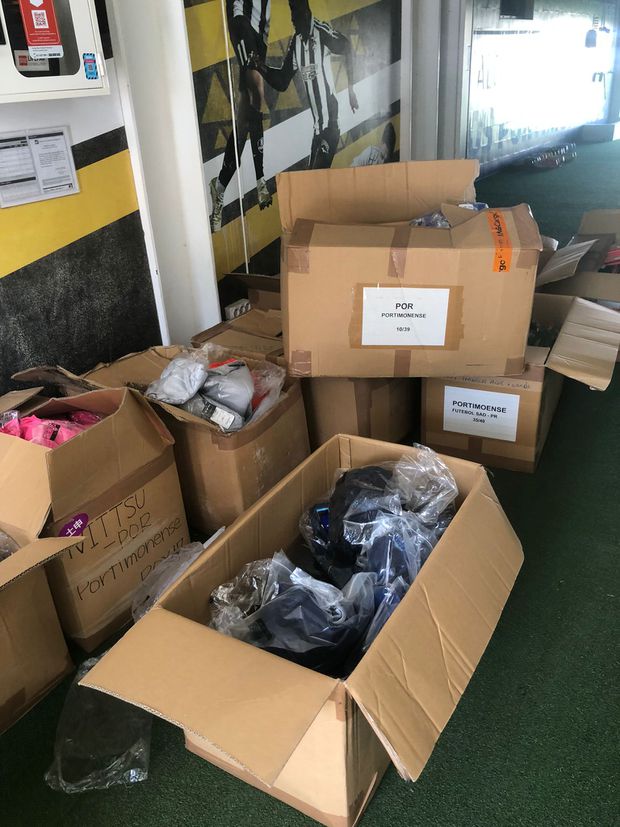 Os equipamentos desportivos, como camisolas, calções e fatos de treino, foram enviados para a SOS RS em Portugal, que as encaminhará para as pessoas daquele estado brasileiro que necessitam.