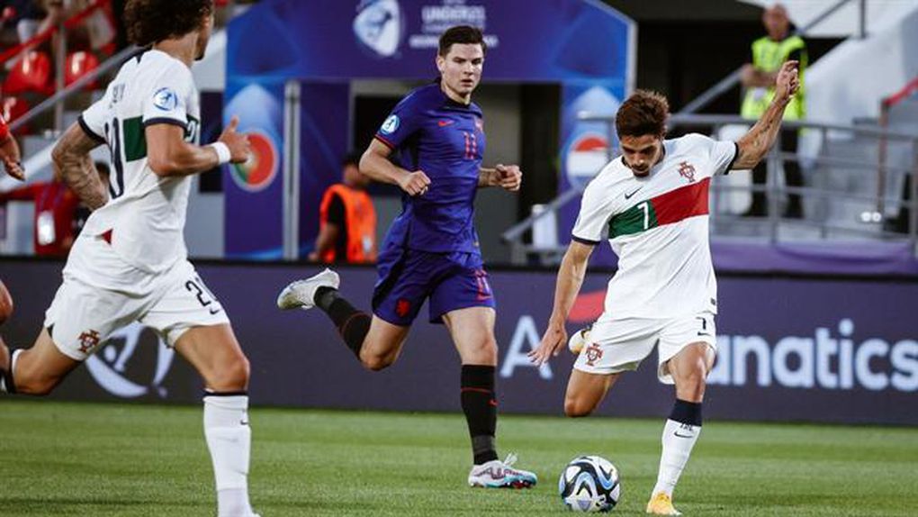Até esse momento, o domínio dos Países Baixos foi evidente, com maior posse de bola, mas ficando sempre no ar a ideia de que esse domínio era de alguma forma consentido, uma vez que Portugal estava em vantagem desde o minuto 20, altura em que se colocou em vantagem - passe longo de Tiago Dantas para Pedro Neto, que cruza da esquerda e André Almeida finaliza com sucesso.