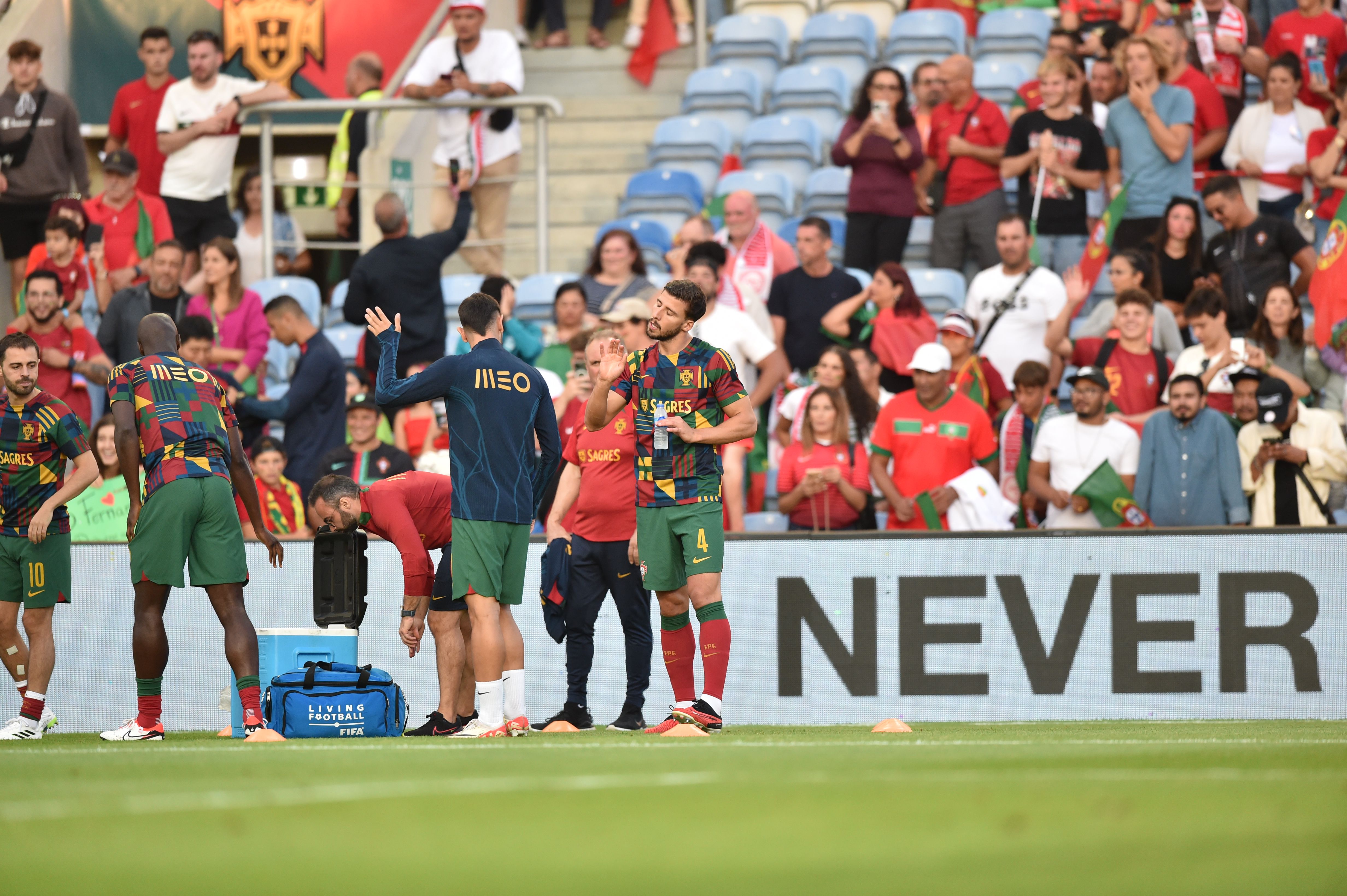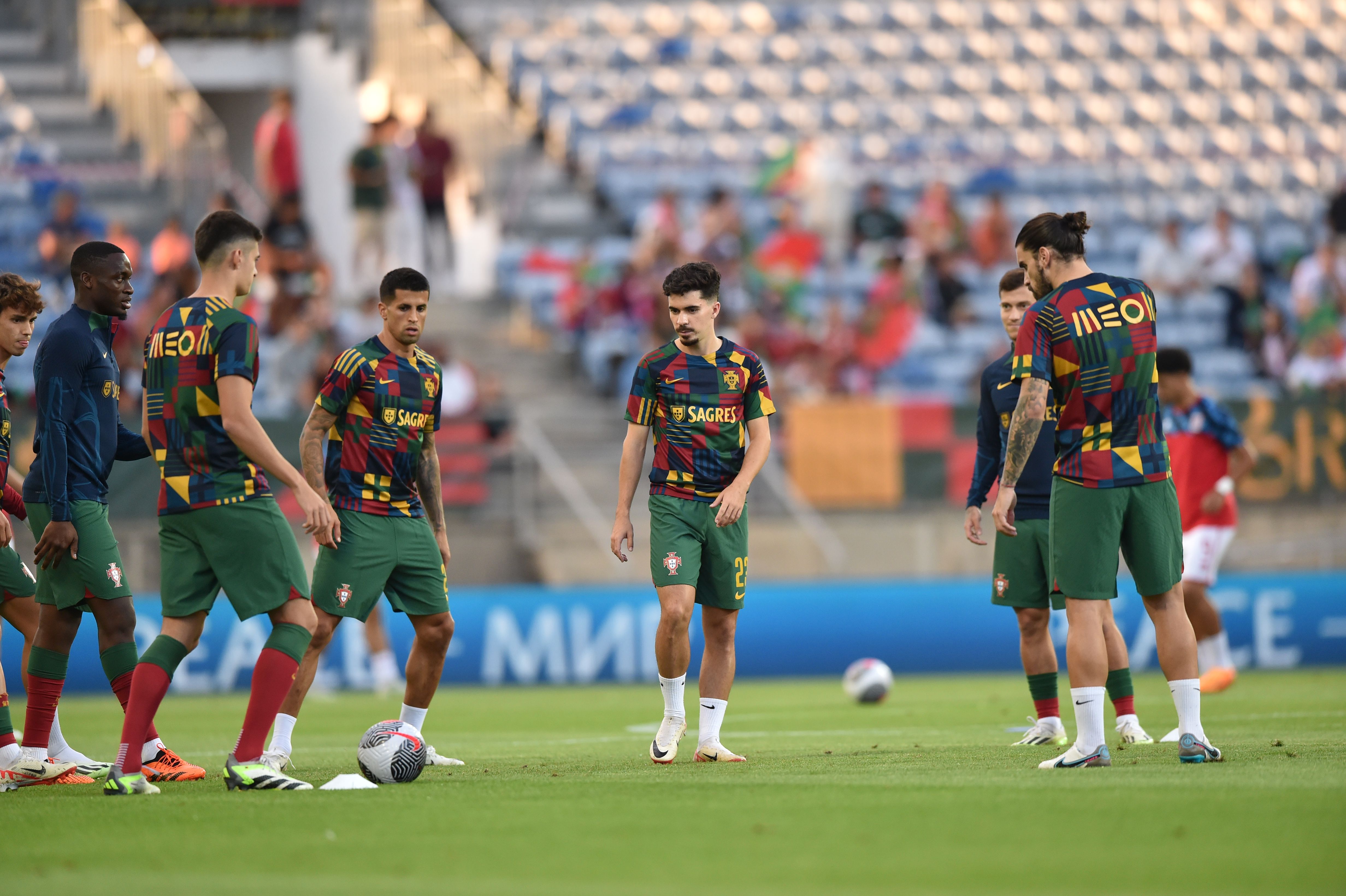 A Seleção Nacional já entrou para o aquecimento, quando faltam 35 minutos para o jogo.