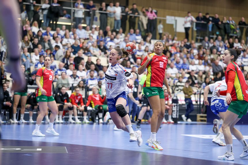 A equipa nórdica entrou forte, impondo o seu ritmo e uma defesa que dificultou a ofensiva portuguesa. A guarda-redes Jéssica Ferreira travou um livre de 7 metros que impediu uma fuga precoce das anfitriãs no marcador e foi impulso para que as ações atacantes ganhassem eficácia. Nádia Rodrigues e Luciana Rebelo foram as mais produtivas no ataque.
