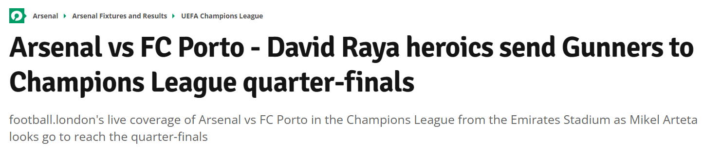 O que se diz lá fora sobre o Arsenal-FC Porto: