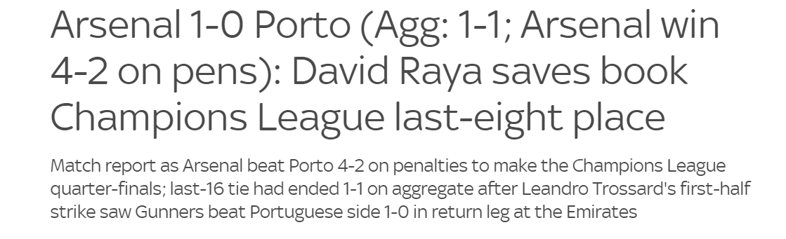 FC Porto eliminado da Liga dos Campeões pelo Arsenal no desempate da marca das grandes penalidades. Imprensa internacional destaca boa réplica dada pelos dragões