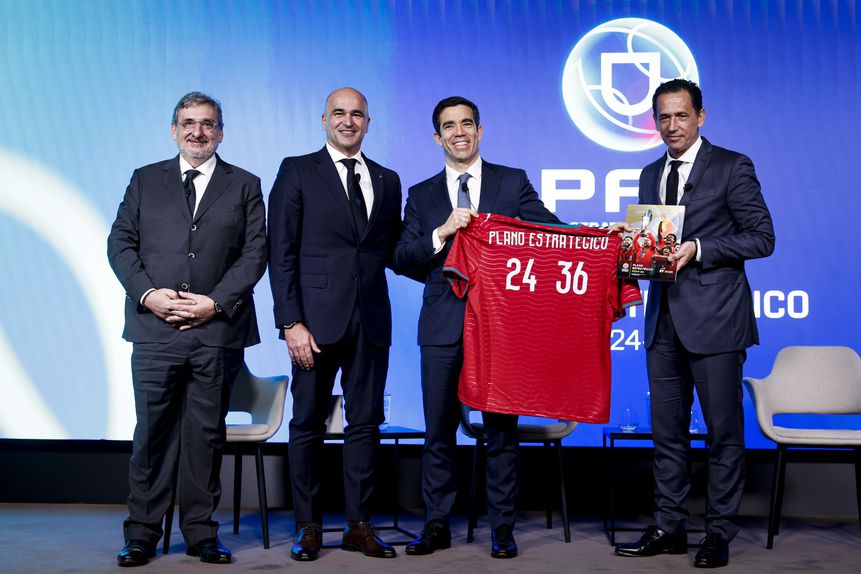 O auditório n.1 da Cidade do Futebol encheu-se na manhã desta terça-feira para a apresentação do Plano Estratégico 2024-2036 da FPF, cujo ponto alto consistiu numa mesa redonda que contou com o ministro da Presidência, António Leitão Amaro, o presidente da FPF, Pedro Proença, e o selecionador nacional de futebol, Roberto Martínez.