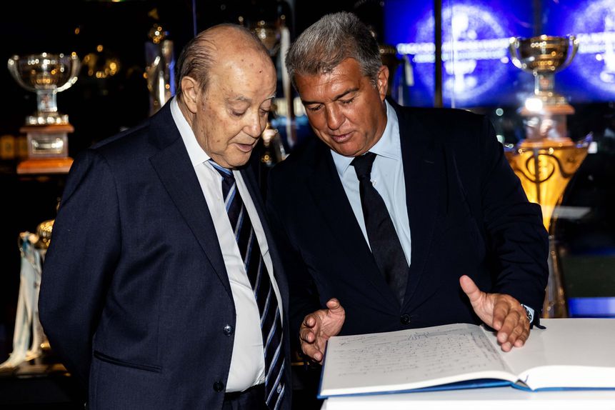 Joan Laporta foi acompanhado por Pinto da Costa, presidente do FC Porto