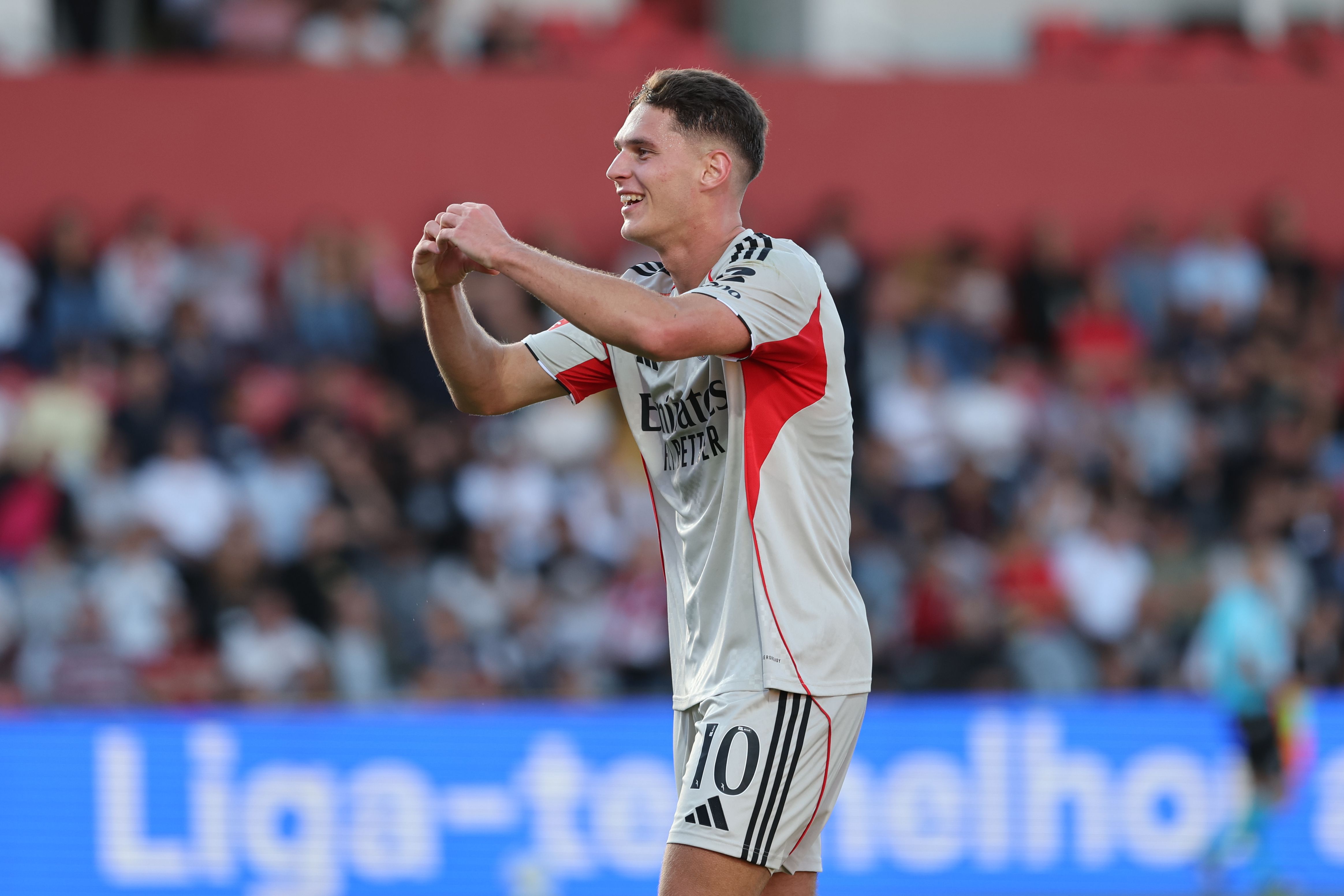 Foi então que se começou a ver maior variabilidade tática no Benfica. Do 4x1x3x2 inicial, a equipa passou a apresentar variações, como o 4x2x3x1, com Ríos e Barreiro à frente da defesa, ou até um 4x4x2, com Schjelderup quase ao lado de Pavlidis. Foram, primeiro, mexidas de mindinho, mas que evoluíram para ajustes de polegar e indicador quando os encarnados já venciam por três golos e sem sofrer nenhum — algo que não acontecia desde o triunfo sobre o Fenerbahçe de Mourinho.