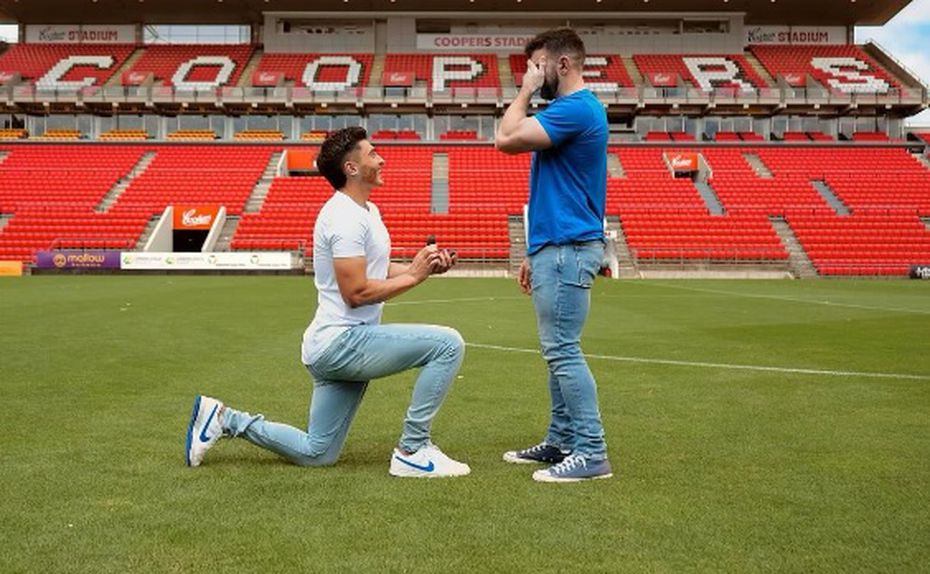 Joshua Cavallo, o primeiro jogador de futebol a assumir publicamente a sua homossexualidade, pediu o namorado de longa data, Leighton Morrell, em casamento. E o Adelaide United, clube onde o lateral-esquerdo joga, deu uma 'mãozinha', uma vez que o pedido foi feito em pleno relvado do estádio.