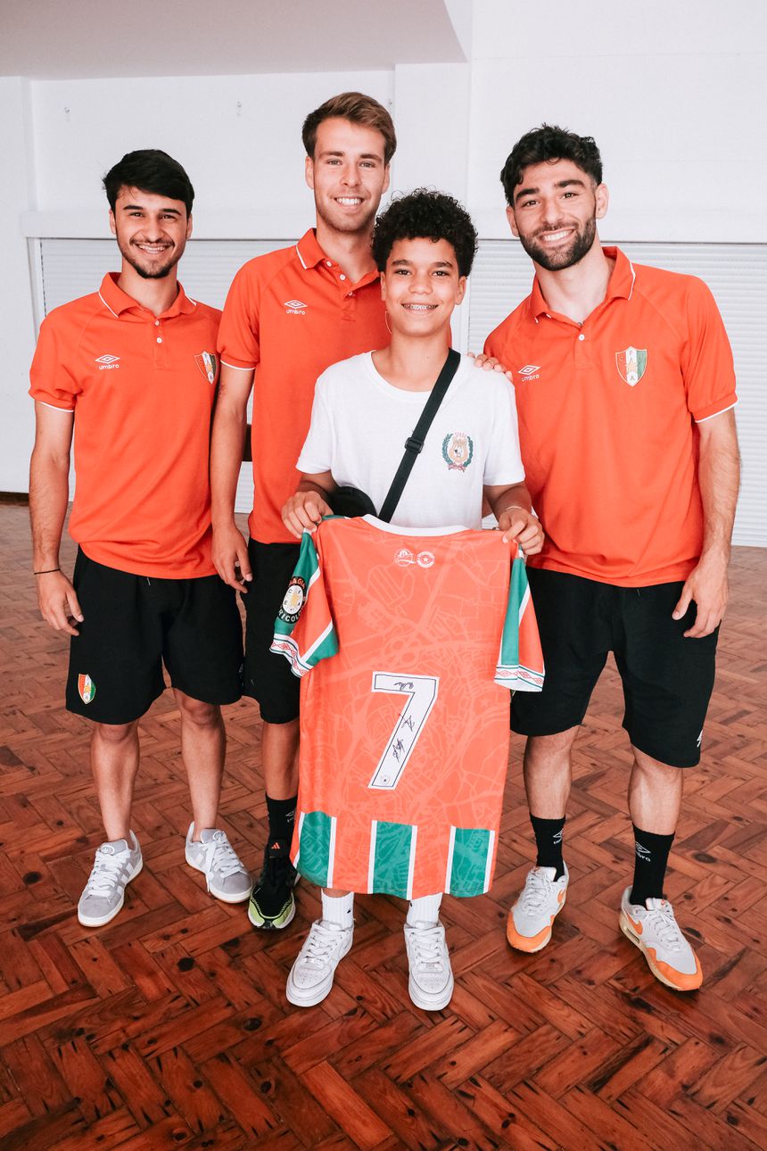 O internacional olímpico pelo Iraque e os dois jovens portugueses surpreenderam as crianças que participam na colónia de férias da Sociedade Filarmónica de Apoio Social e Recreio Artístico da Amadora (SFRAA), com as quais tiraram fotografias e distribuíram autógrafos através de camisolas do clube e também nas t-shirts da SFRAA, que se localiza na Rua Elias Garcia, bem no coração da cidade da Amadora, num clima de convívio e boa disposição.